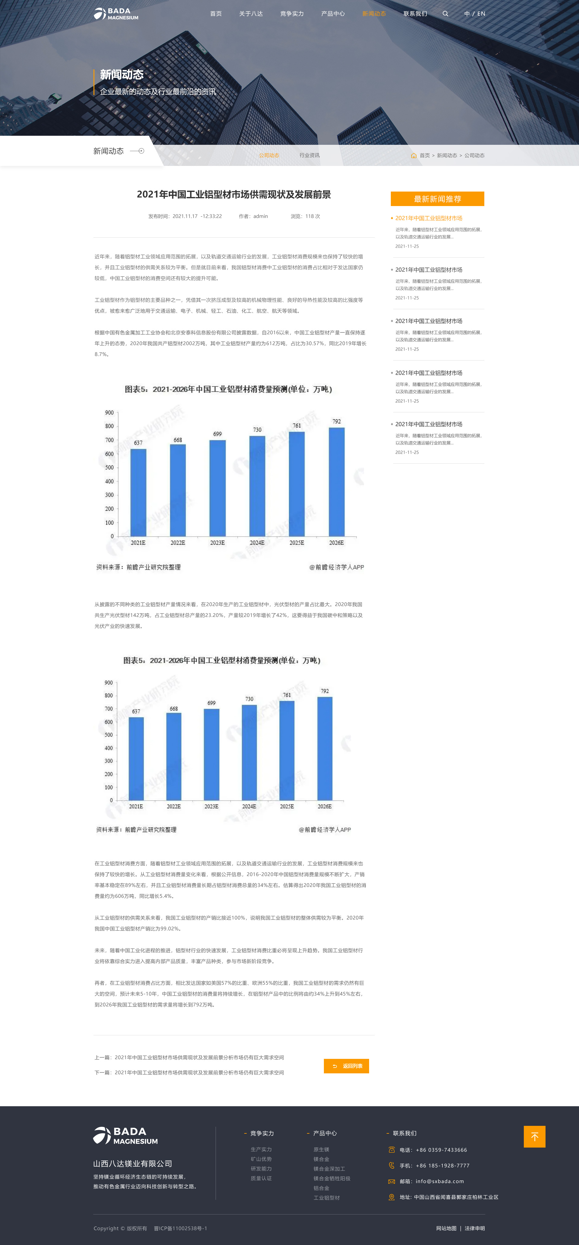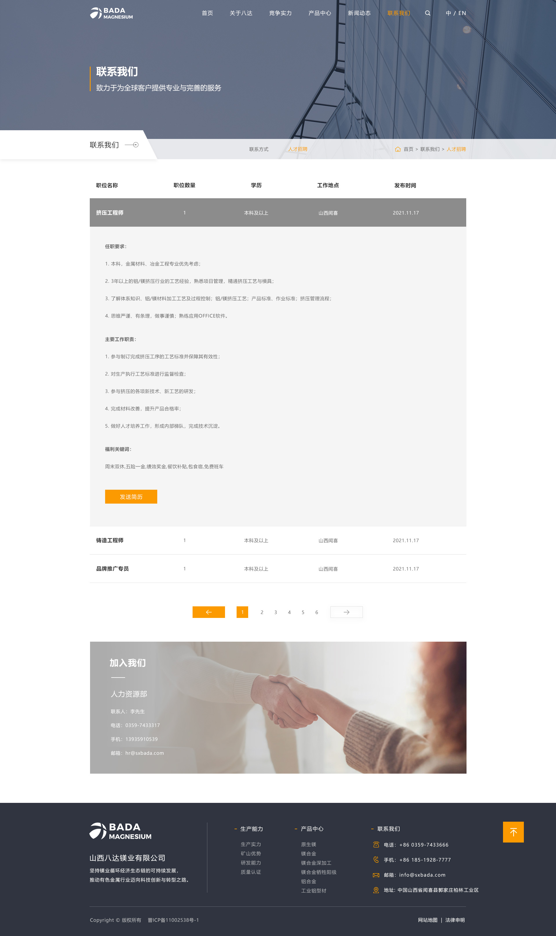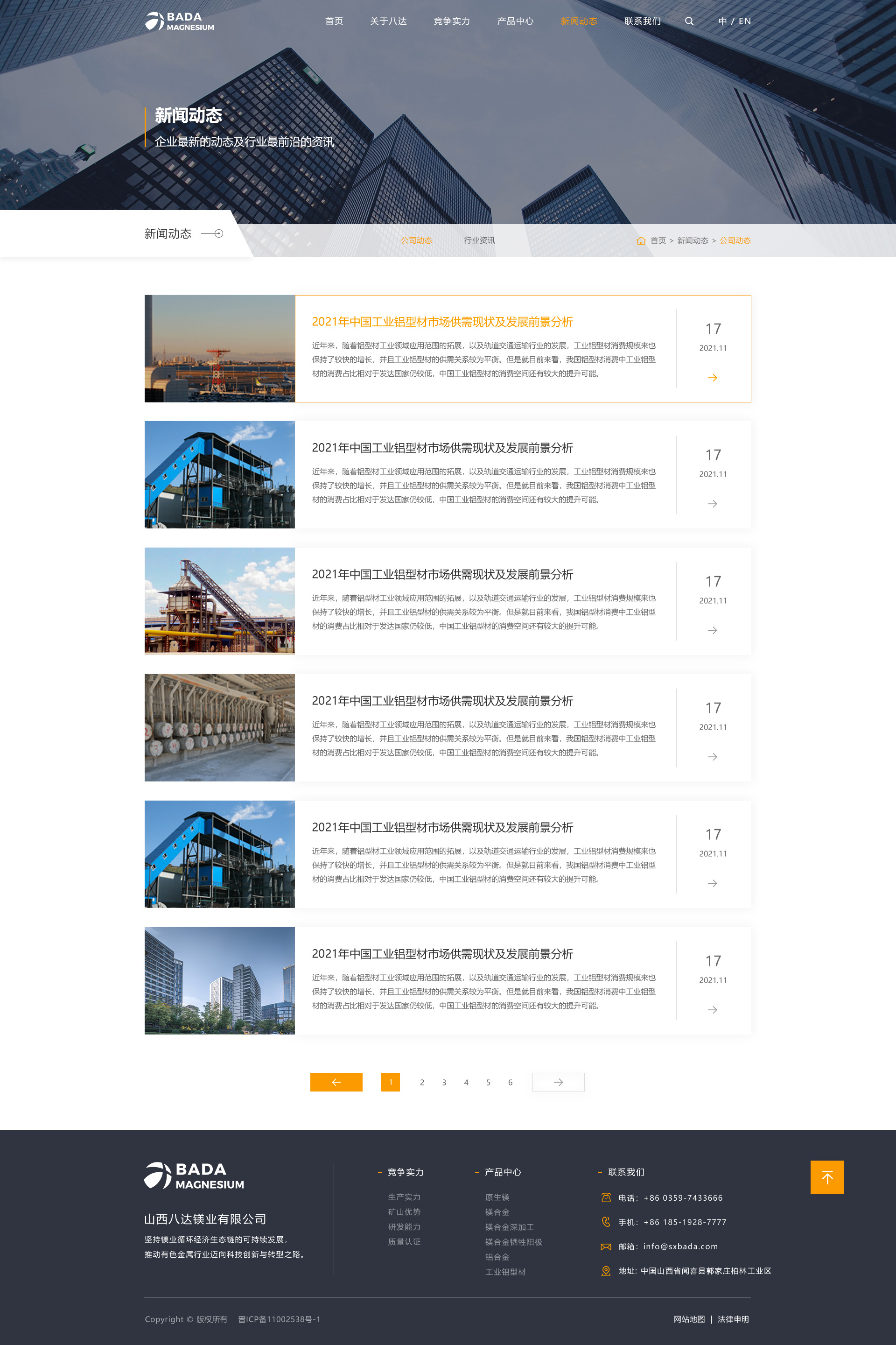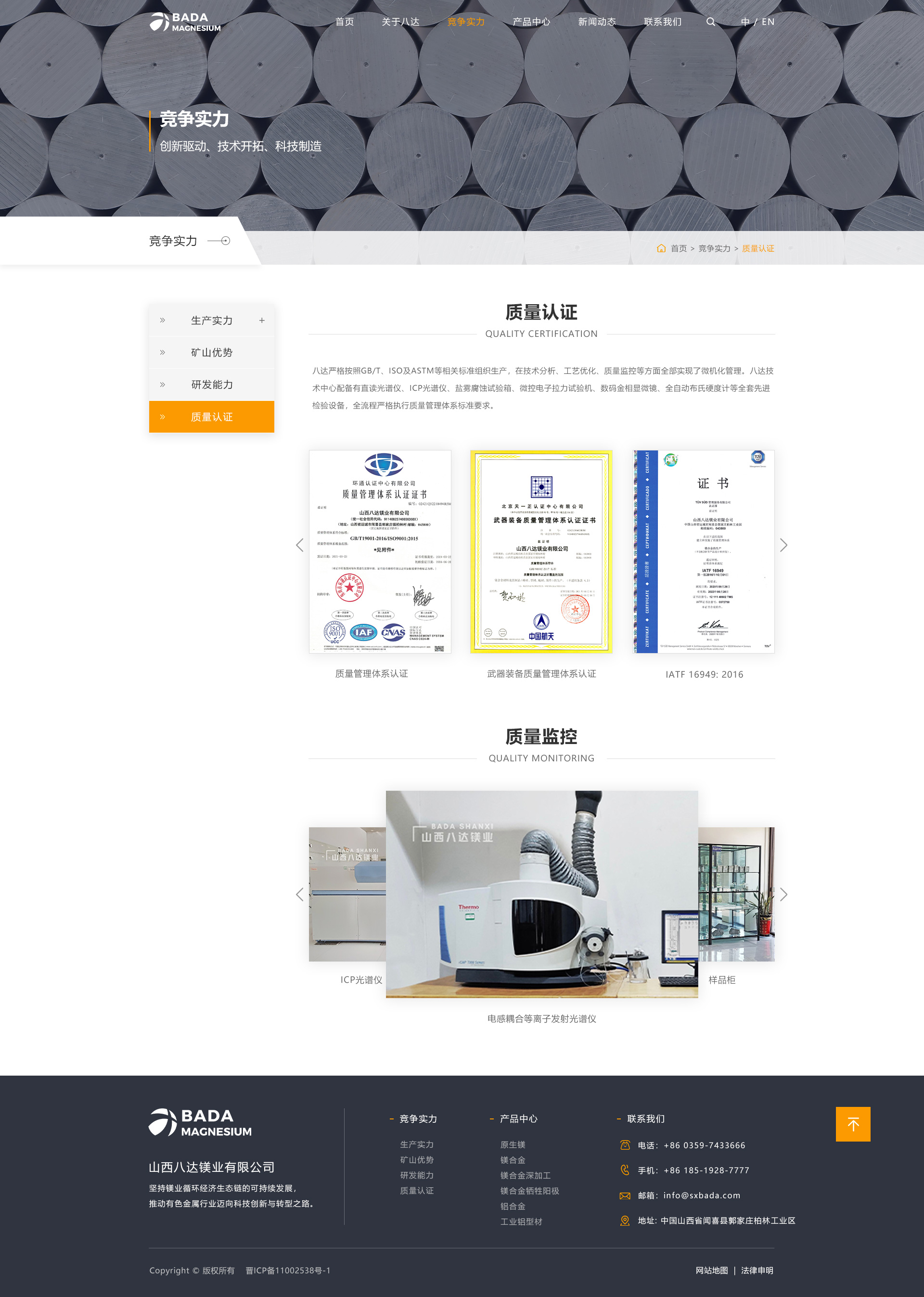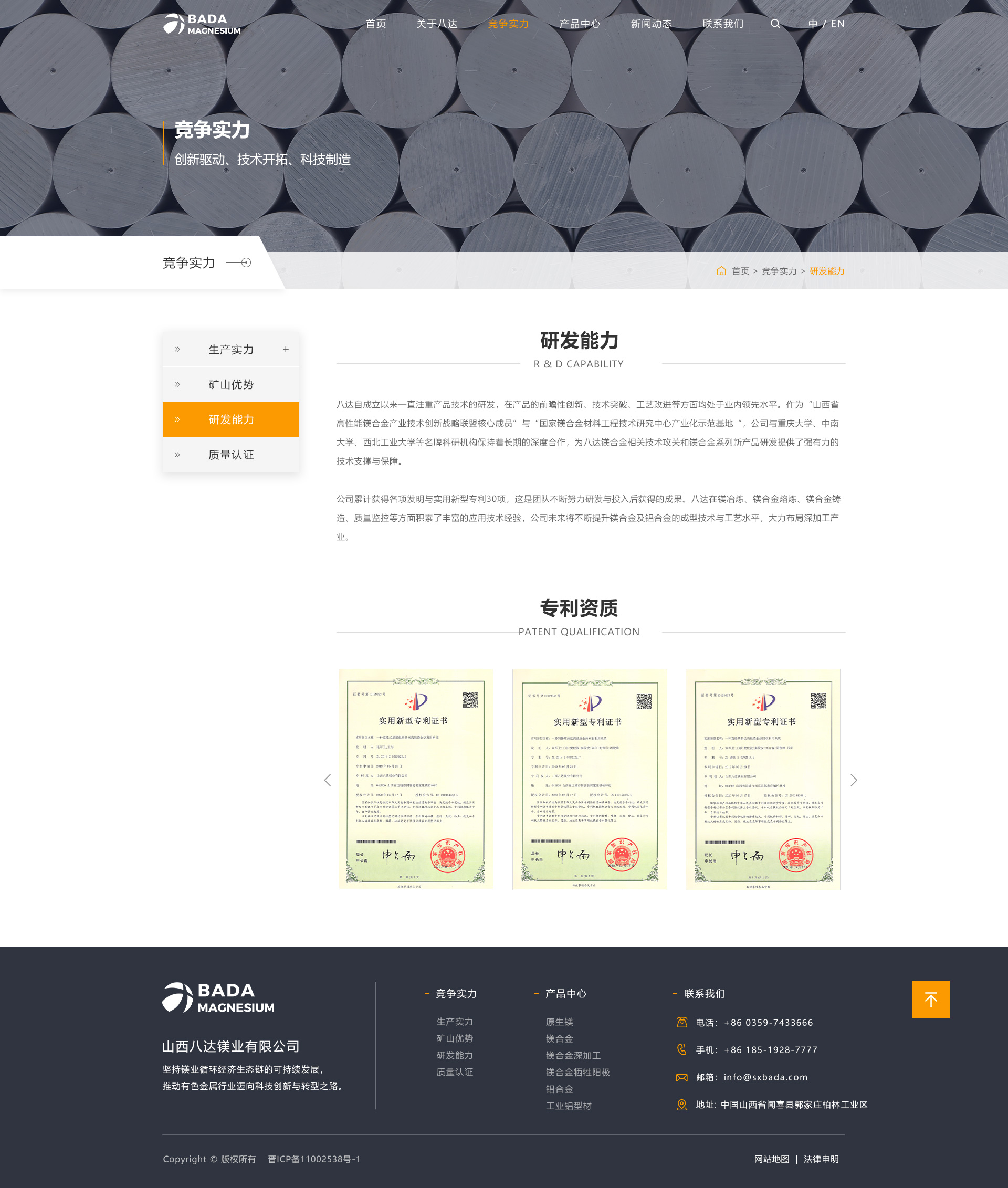 山西八达镁业有限公司始创于1997年,是一家集矿山开采、原镁冶炼、合金熔铸与回收、镁/铝合金铸造、镁/铝合金压延加工于一体的规模化企业,连续多年跨入中国金属镁生产前五强,是山西省重要的金属镁及镁系列产品生产基地、高新技术企业、中国有色金属工业协会镁业分会理事单位和运城市优势企业。